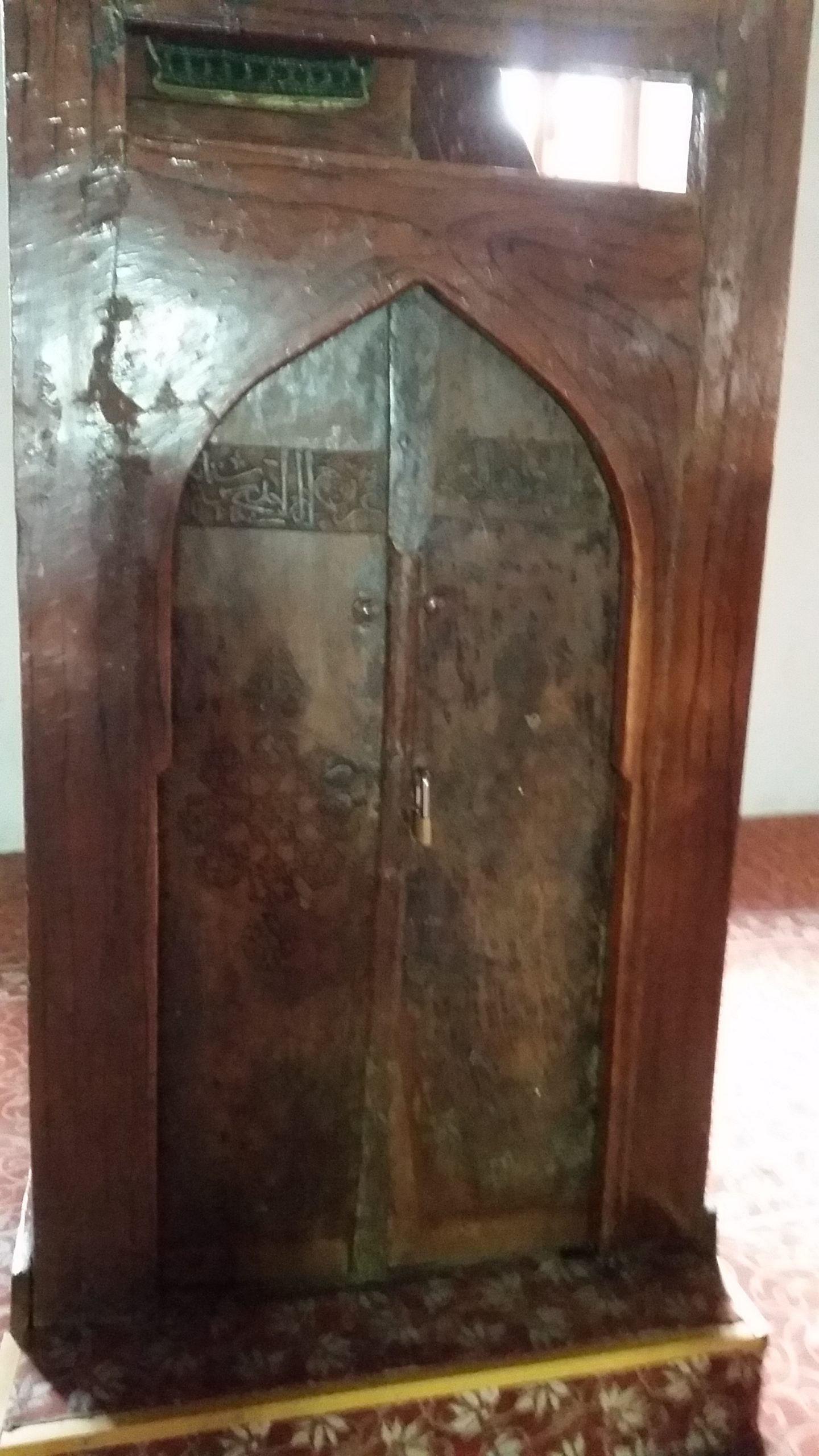 Orijinalliğini koruyan minber kapısı, Selçuklu tarzı oymalı, iki kanatlıdır. Bunun üzerinde ki kitabede ise bazı ayetler bulunmakta, ayrıca “Amele Emir Hac el Neccar 671 Rebiülevvel (1272)” şeklinde, camiin ve mihrabın ilk yapılışını da belli eden açık bir tarih yer almaktadır. Buna göre, camiin ve ağaç işlemelerin ustası, Dülger ( Neccar) Emir Hacı Beydir.