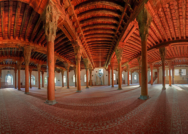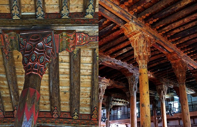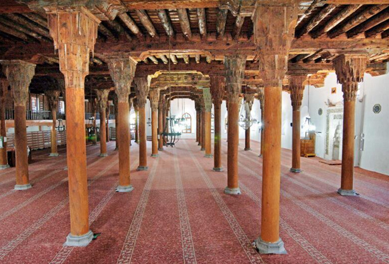 Buradan Ulu Camiye doğru yürüdük, dışarıdan taş yapı gibi gözüken caminin içine girince bir şaşkınlık yaşadık. İnanılmaz güzellikle ahşap direkli, tavanı tamamen ahşap bir cami ile karşılaştık.
