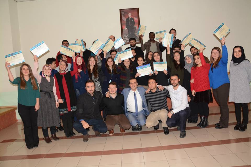 Açılış konuşmalarını takiben programa iştirak eden öğrencilere katılım belgeleri verildi.